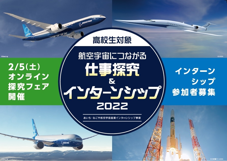 あいち・なごやエアロスペースコンソーシアム(事務局:県次世代産業室)(以下、「コンソーシアム」という。)では、航空宇宙産業における新たな担い手を育成・確保するため、県内の航空宇宙産業に携わる企業12社と連携し、航空宇宙産業に特化した高校生インターンシップを実施します。また、インターンシップ前にはオンライン上で受入企業を知っていただくための「オンライン探究フェア」を実施します。航空宇宙産業に特化したインターンシップは、県内に航空宇宙産業が集積している愛知県ならではの取組です。是非、航空宇宙産業に関心のある高校生の方は、御応募ください。