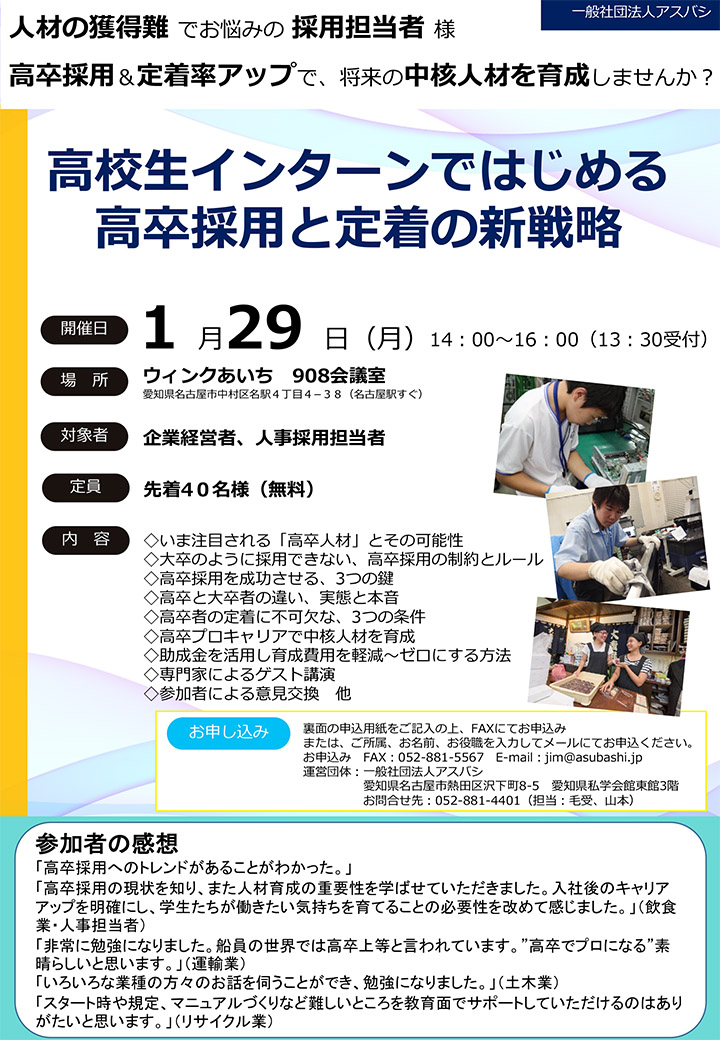 対象: 高卒採用を検討されている企業の経営者や人事担当者