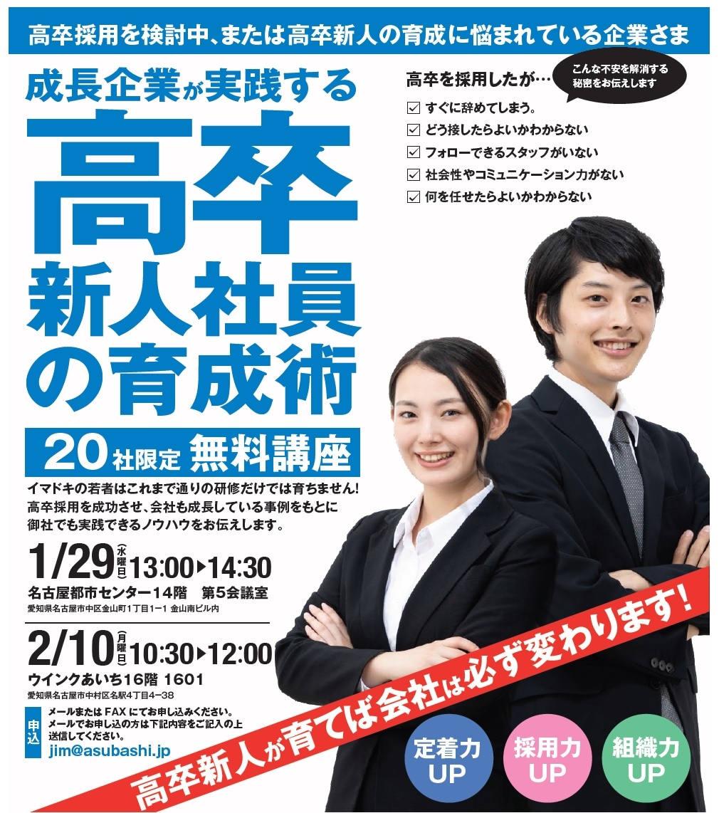 【参加者募集】成長企業が実践する「高卒新人社員の育成術」20社限定無料講座